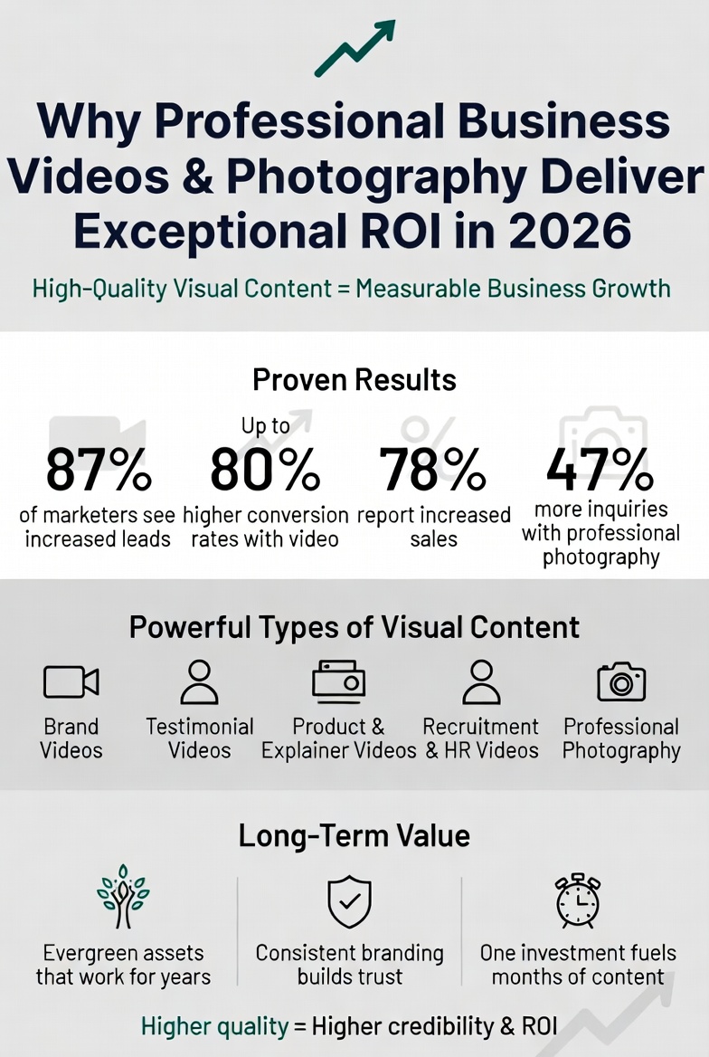 If you’re a business owner or marketing leader looking to elevate your brand, attract more qualified leads, and build lasting customer trust, professional video and photography are among the highest-ROI investments available today.